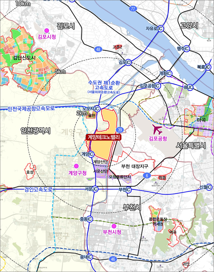 2029년말 준공예정인 계양테크노밸리는 총면적 333만㎡(귤현·동양·박촌·병방동 일원) 규모로 첨단산업 혁신클러스터를 핵심축으로 한 자족형 도시를 지향한다.
