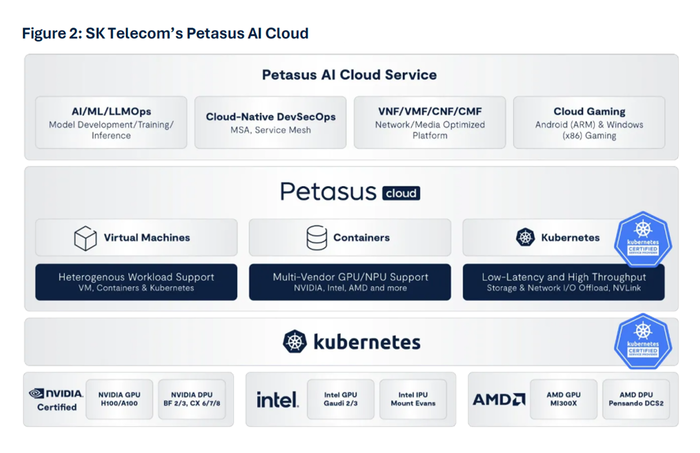 보고서가 주목한 핵심은 해인(Haein) 클러스터와 페타서스(Petasus) AI 클라우드다. 해인은 엔비디아의 차세대 AI 가속 칩 블랙웰이 탑재된 고성능 GPU 인프라다. 엔비디아의 최신 아키텍처인 B200 1000장 이상을 단일 클러스터로 구성했다. SK텔레콤은 이를 바탕으로 대규모 AI 모델 학습과 추론을 위한 연산 환경을 제공하고 있다고 설명했다.
