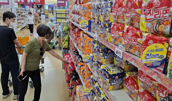 서울 시내 마트에서 시민이 장을 보고 있다. [이승환 기자] 이란 사태 여파로 소비자들의 경제 심리가 급격하게 위축된 것으로 나타났다.