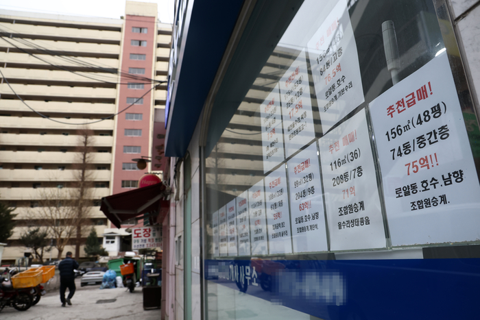 한국은행이 25일 발표한 ‘소비자동향조사’ 결과에 따르면 주택가격전망지수(96)는 12포인트 급락했다. 이 지수가 100을 하회하는 것은 1년 뒤 집값 하락을 점치는 소비자가 더 많아졌다는 의미다. 사진은 이날 서울 강남구 한 부동산중개업소. [연합뉴스] 중동 사태 영향으로 소비자들의 경제 심리가 확 얼어붙었다.