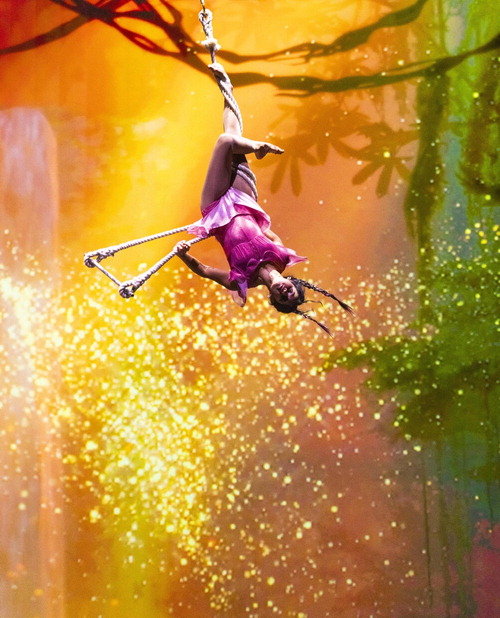 '윙즈 오브 메모리' 주인공 이엘 역 연기자가 트래페즈 기예를 선보이고 있다. 에버랜드