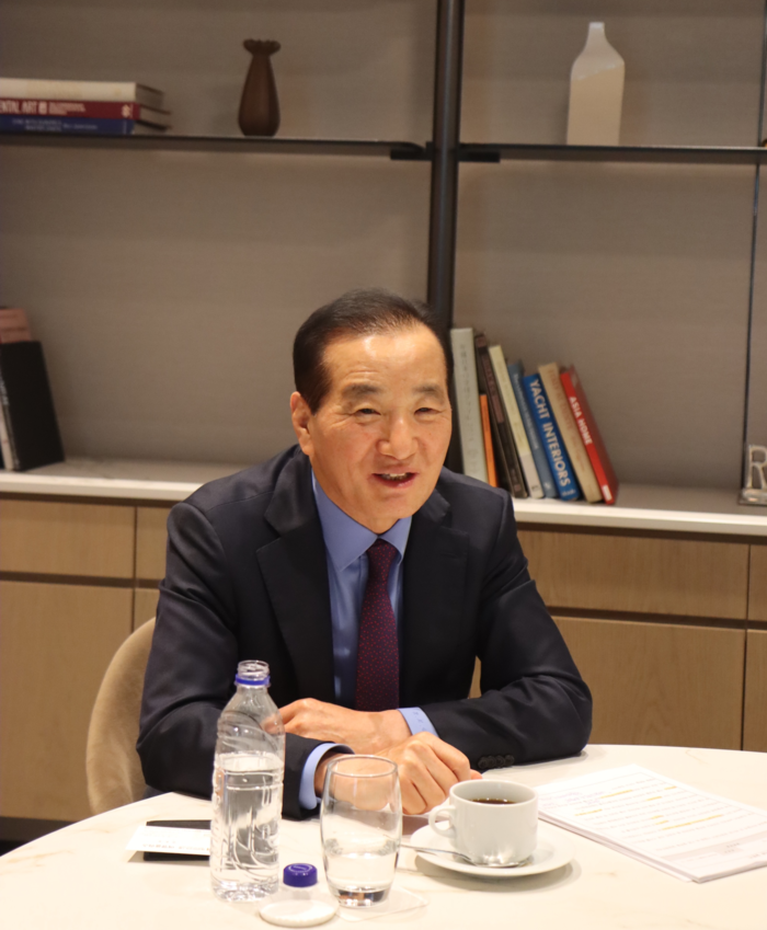 인터뷰를 하고 있는 우희명 희앤썬 회장 / 사진=AC 호텔 바이 메리어트 서울 강남 건설사 최연소 현장 소장이 호텔 오너가 된 사연