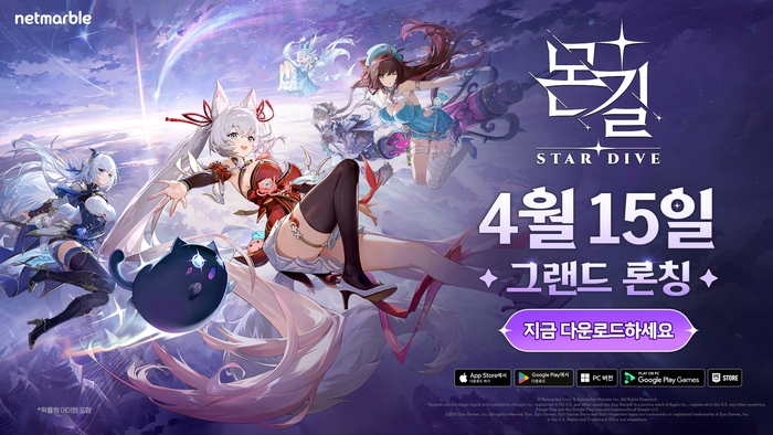 몬길: STAR DIVE. <넷마블> 넷마블은 몬스터 테이밍 액션 역할수행게임(RPG) 신작 ‘몬길: STAR DIVE’를 15일 PC·모바일 플랫폼에서 전 세계(중국 등 일부 국가 제외) 정식 출시했다고 밝혔다.