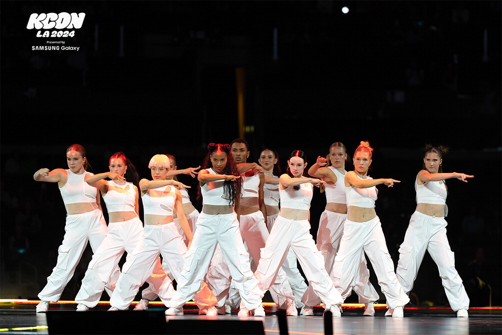 로스앤젤레스에서 열린 'KCON LA 2024'에서 보스턴 컨서바토리 학생들이 케이팝 퍼포먼스를 선보이고 있다. CJ ENM