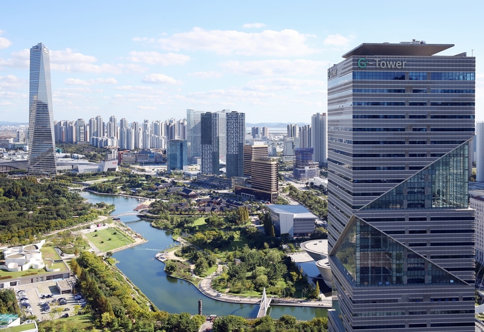 인천경제청이 입주해 있는 G타워(오른쪽 건물)와 송도국제도시 전경. <사진=인천경제청 제공> 인천경제자유구역청(인천경제청·청장 윤원석)은 오는 9월 송도 미추홀타워 1층에 중소·창업기업의 글로벌 진출을 돕는 디지털무역종합지원센터 ‘덱스터(deXter)’를 개소한다고 21일 밝혔다.