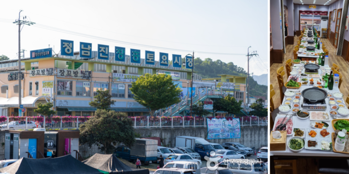 정남진장흥토요시장 / 사진=한국관광공사,장흥한우삼합구이 가게 / 사진=장흥한우삼합구이 가게 SNS 이어 3위는 전남 장흥군이 69.9%로 이름을 올렸다.