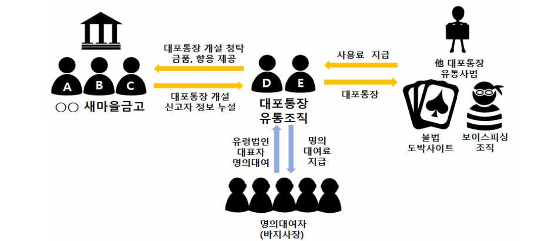유통조직은 확보한 대포통장을 도박사이트에 유통해 사용료를 받거나 다른 대포통장 유통업자에게 해당 새마을금고 지점을 소개해 주며 수수료를 챙긴 것으로 알려졌다. 이 과정에서 챙긴 범죄수익은 30억원에 달한다.
