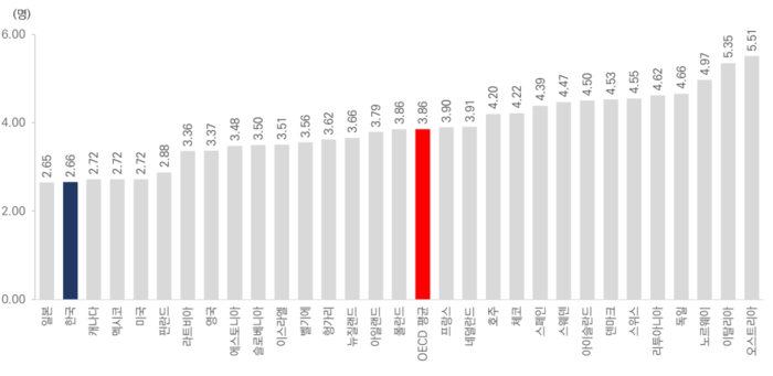만성질환의 주요 원인인 과체중과 비만인구 비율도 OECD 국가 중 두 번째로 낮았다.