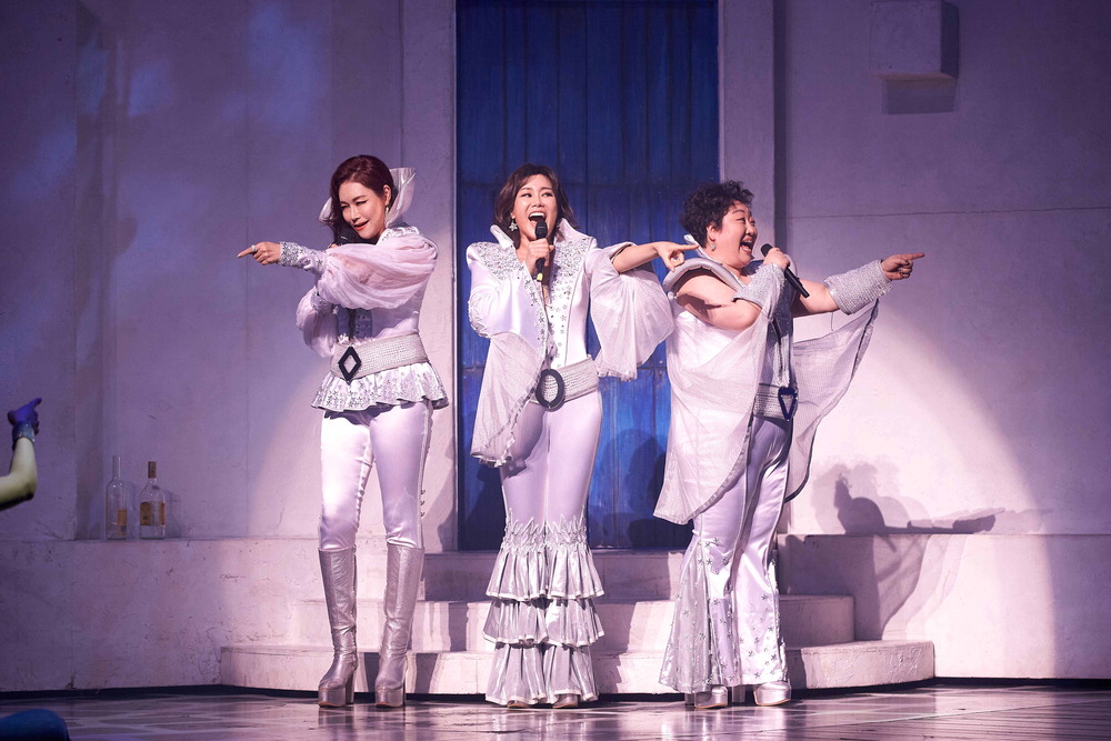 뮤지컬 '맘마미아'에서 타냐(김영주),도나(신영숙),로지(박준면·왼쪽부터)가 아바의 노래를 열창하고 있다. 신시컴퍼니