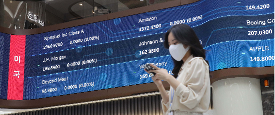 서울 여의도 한국투자증권 본사 로비에 미국 주식 종목들이 표시돼 있다. (사진=매경DB) 미국 증시에 투자하는 ‘서학 개미’가 다시 미국 주식과 채권을 적극 매수하고 있다. 코스피가 3100∼3200선 박스권에 갇힌 기간이 길어지고 세법 개정안 논란까지 더해지면서 미국 시장에 대한 관심이 커진 것으로 분석된다.