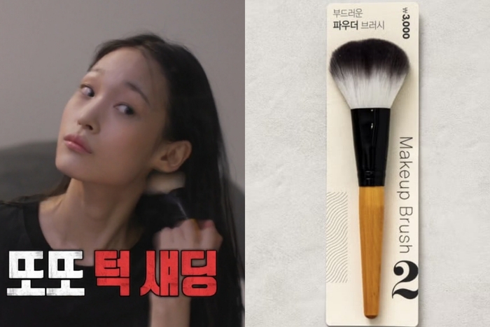 이 가운데 애니가 턱 셰딩에 사용한 다이소의 ‘부드러운 파우더 브러시’가 많은 화제를 모았다. 해당 제품의 가격은 3000원으로,부드러운 촉감과 적당한 탄력으로 이미 ‘코덕(코스메틱 덕후)’들에게 입소문이 난 제품이다.