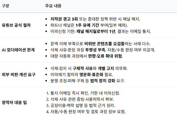 공정거래위원회 관계자는 “계정 해지나 영상 삭제는 이용자의 권리를 제한하는 행위인 만큼 사유가 구체적이고 합리적이어야 한다”며 “이용자에게 개별 고지하고 이의를 제기하거나 정정할 수 있는 기회를 제공할 것을 과거에도 권고한 바 있다”고 말했다.