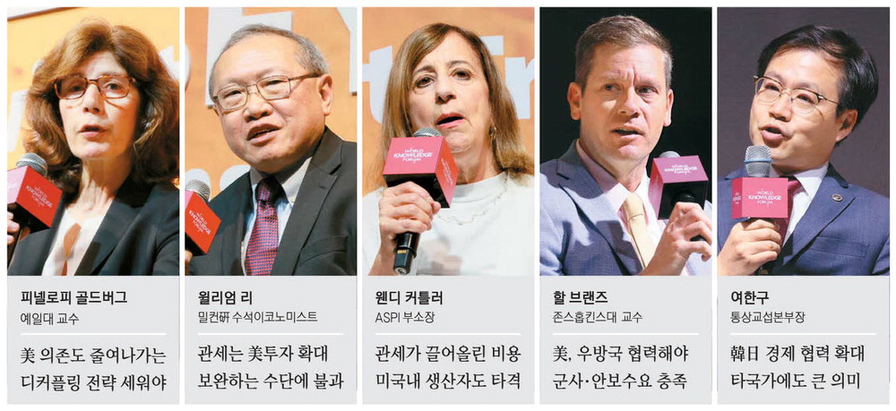 11일 서울 중구 신라호텔·장충아레나에서 열린 제26회 세계지식포럼에서는 미국발 새 무역 질서인 이른바 '트럼프라운드'에 대해 논쟁이 이어졌다. 피넬로피 골드버그 예일대 교수,윌리엄 리 밀컨연구소 수석이코노미스트,웬디 커틀러 아시아소사이어티정책연구소(ASPI) 부소장은 이날 진행된 '미국 통상 정책과 글로벌 공급망의 재편 세션'에서 트럼프 대통령의 관세 정책을 두고 설전을 주고받았다.