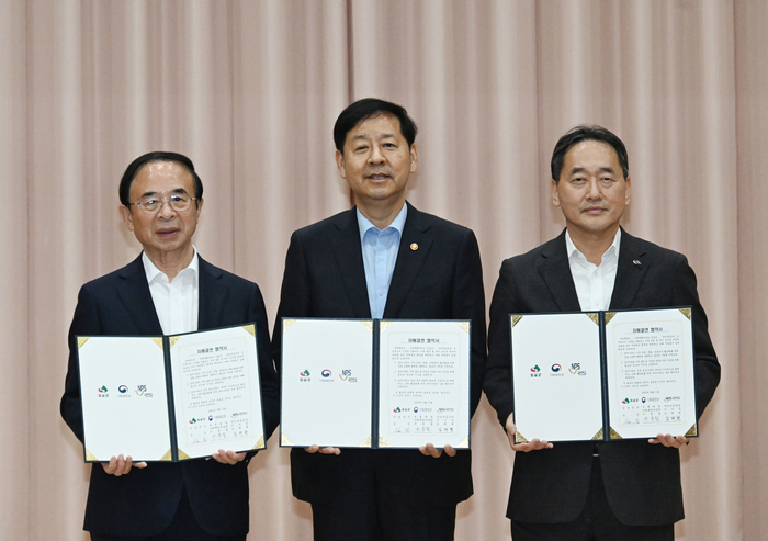 11일 구윤철 경제부총리 겸 기획재정부 장관(가운데)와 심민 임실군수(왼족),김태현 국민연금공단 이사장이 전북 임실 인실치츠테마파크에서 열린 ‘지방살리기 상생소비 활성화를 위한 자매결연 협약식’에 참석해 기념촬영을 하고 있다. <사진제공=기획재정부> 구윤철 부총리 “지방 소비·관광 활성화 앞장…전국 확산 기대”