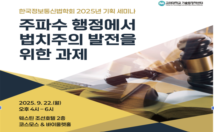 이성엽 학회장은 “이번 세미나는 주파수 재할당 정책 등 시의성 높은 현안을 계기로,주파수 행정에서 법치주의 원칙을 재조명하는 자리”라며 “투명하고 예측 가능한 제도 설계를 통해 국가 경쟁력과 공공성을 함께 강화하는 방안이 심도 있게 논의될 것”이라고 말했다.