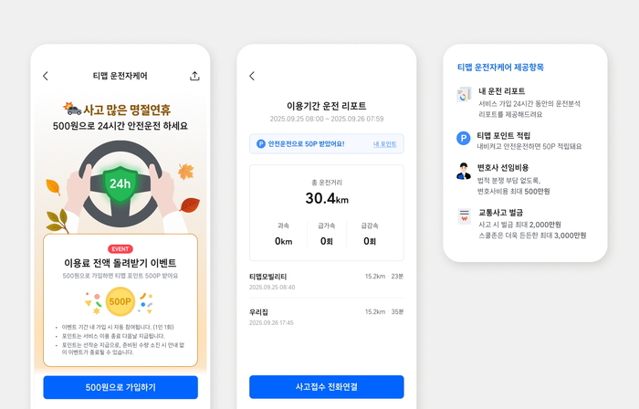 유정화 티맵모빌리티 카라이프 리더는 “티맵모빌리티는 운전자들이 일상에서 합리적 비용으로 폭넓은 보장을 누릴 수 있도록 서비스를 고도화하고 있다”며 “앞으로도 이동 데이터를 기반으로 생활 전반을 아우르는 맞춤형 서비스를 지속적으로 선보일 것”이라고 말했다.