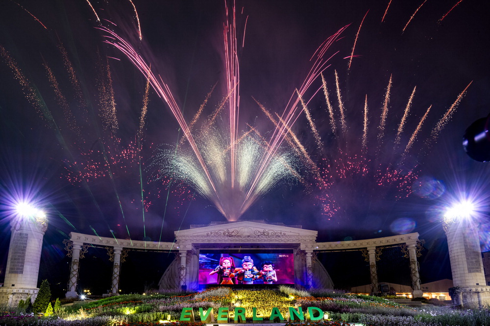 에버랜드가 연말까지 매일 밤 포시즌스가든에서 '케이팝 데몬 헌터스 싱어롱 불꽃쇼'를 선보인다. 넷플릭스 애니메이션 '케이팝 데몬 헌터스' 영상과 OST가 초대형 발광다이오드(LED) 스크린,불꽃,특수효과,음악으로 어우러져 관람객에게 압도적인 몰입감을 전한다. 에버랜드