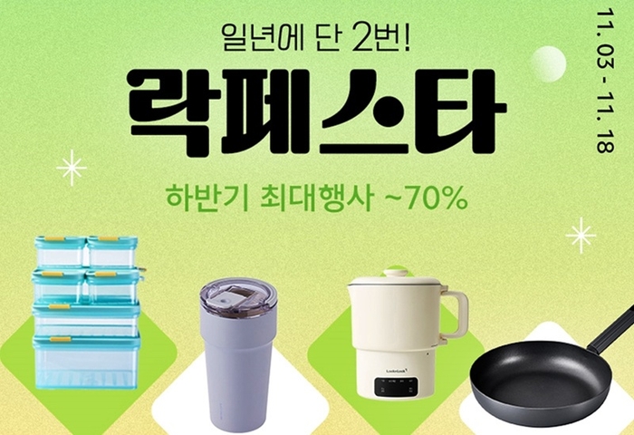 글로벌 생활용품 기업 락앤락이 올해 마지막 프로모션 행사 ‘락페스타’를 오는 18일까지 락앤락몰에서 진행한다고 3일 밝혔다.