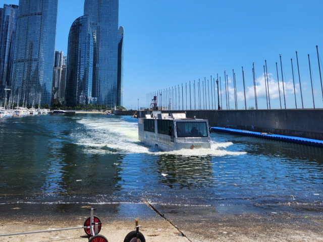 부산 수륙양용버스가 시험 운항하는 모습. [부산시] 내년에 부산에서는 해상택시와 수륙양용버스를 모두 볼 수 있게 된다.