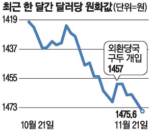 미국 증시에서 인공지능(AI) 거품론이 또다시 기승을 부리며 위험 회피 심리를 자극하면서 가뜩이나 강달러로 불안하던 외환시장이 다시 한번 출렁였다. 21일 서울 외환시장에서 달러당 원화값은 전날 대비 7.7원 하락한 1475.6원에 오후 정규장을 마감했다. 이는 지난 4월 9일(1484.1원) 이후 최저치다.
