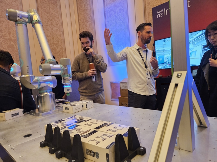 올해 아마존웹서비스(AWS) 리인벤트(Re:Invent)의 핵심 키워드로 ‘피지컬 AI’가 급부상했다. 제조·물류·서비스 영역까지 인공지능(AI) 로봇이 직접 판단하고 움직이는 기술이 본격 상용화를 향해 나아가고 있다는 점에서다. 행사장 곳곳에서도 관련 기업들의 세션과 쇼케이스가 이어지며 열기를 더했다. 국내 기업 중에서는 피지컬 AI 스타트업 ‘리얼월드’가 대표 주자로 주목받았다.