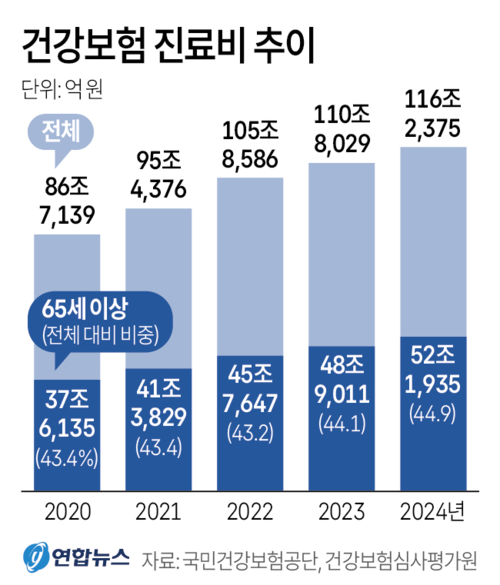 9일 국민건강보험공단 건강보험연구원의 ‘질환별 건강보험 진료비 추계 및 분석 연구’ 보고서에 따르면 국내 총진료비는 2004년 22조 원에서 2023년 110조 원으로 20년 만에 5배 이상 급증했다. 연구팀은 유병률 변화와 의료기술 발전 등 비인구학적 요인을 반영할 경우,2030년 총진료비가 189조~191조 원에 이를 것으로 추산했다. 이는 정부의 기존 재정 전망을 웃도는 수치다.